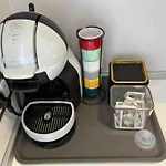Naast koffie- en theevoorzieningen heeft de accommodatie een ingerichte keuken met een magnetron, een waterkoker en een koelkast.